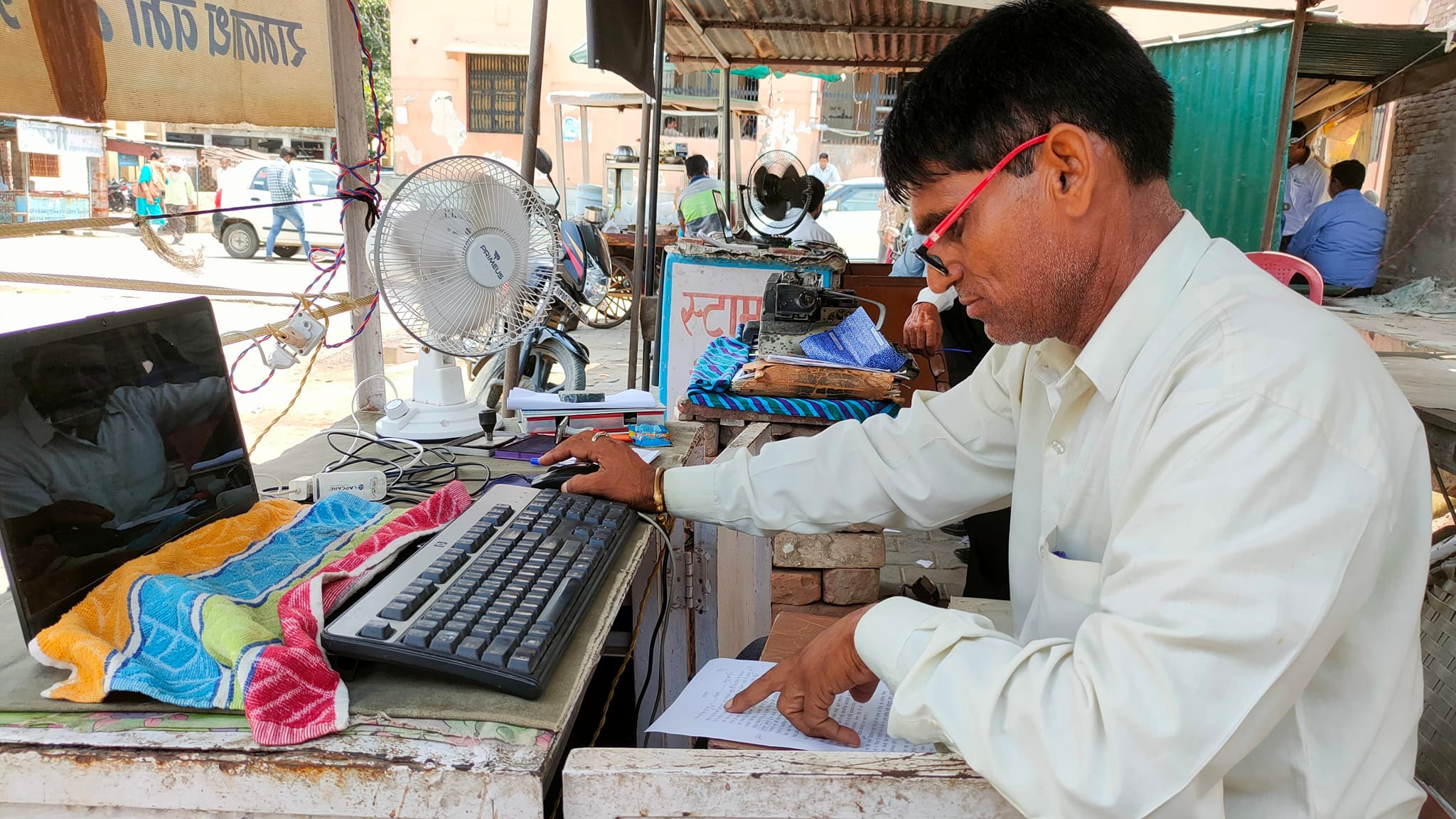 ये हैं रामनाथ वर्मा जी। उम्र होगी करीब 60 वर्ष। इस आयु में जब लोग पारिवारिक जिम्मेदारियों से मुक्त होकर घूमने-फिरने, घर पर आराम करते हैँ, रामनाथ जी तब आगरा कलेक्ट्रेट में कंप्यूटर पर एफिडेविट बनाने में जुटे रहते हैं। कलेक्ट्रेट, एफिडेविट, ये कोई नई बात नहीं है। नयापन तो ये है कि टाइपराइटर पर टक-टक की आवाज गूंजने वाले कलेक्ट्रेट में अब ये शोर थम चुका है। अधिकतर लेखक कम्प्यूटर पर काम करने लगे हैं। ये बदले समय की जरूरत भी थी। होती भी क्यों ना। अब किसी के पास समय नहीं है। जो भी यहां आता है, तत्काल काम कराने की मंशा रखता है। रामनाथ बताते हैं कि वे 1998 से यहां लेखक और स्टांप वेंडर हैं। टाइपराइटर ही प्रयोग करते रहे हैं। एक साल पहले ही कम्प्यूटर पर काम करना शुरू किया है। इस उम्र में भी कम्प्यूटर सीख गए, कम्प्यूटर पर टाइप करने में कोई दिक्कत तो नहीं हुई, वे बताते हैं कि टाइपराइटर की तरह ही इसका कीबोर्ड है, इसलिए परेशानी नहीं हुई। तब और अब में क्या फर्क महसूस करते हैं, रामनाथ ने बताया कि टाइपराइटर पर अंगुलियां टाइप करते-करते थक जाती थीं, कम्प्यूटर पर ऐसा नहीं है। कम्प्यूटर पर काम करने के कई फायदे भी हैं। जैसे– टाइपिंग जल्दी हो जाती है, लिखावट स्पष्ट होती है, कोई संशोधन करना होता है तो कर लेते हैं। टाइपराइटर में संशोधन में दिक्कत होती थी, या तो सफेदा लगाकर उसी स्थान पर फिर लिखना पड़ता था। कभी-कभी तो ये भी संभव नहीं होता था। ऐसे स्टांप बेकार हो जाता था। स्टांप पेपर की कीमत जेब से भुगतनी पडती थी। अब ई स्टांप का दौर है। ऐसे में कम्प्यूटर बहुत काम आ रहा है। अब तो आराम कर लो, पूरी जिंदगी लगा दी यहां टाइप करते-करते? रामनाथ ने कहा कि जब तक सांस है, काम करते रहना है। इससे एक्टिविटी बनी रहती है। वैसे, परिवार भरा-पूरा है। पांच बेटे हैं। बडा बेटा कलेक्ट्रेट में ही उनकी तरह लेखक है। एक बेटा प्राइवेट जाॅब कर रहा है। दो बेटे अपना-अपना व्यवसाय कर रहे हैं। सबसे छोटा उनके साथ ही काम सीख रहा है। बात करते-करते रामनाथ फिर कम्प्यूटर पर अंगुलियां थिरकने लगे, बोले- जल्दी काम करके देना है।